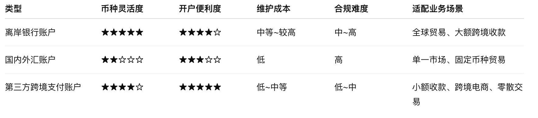 外贸收款账户新对比表